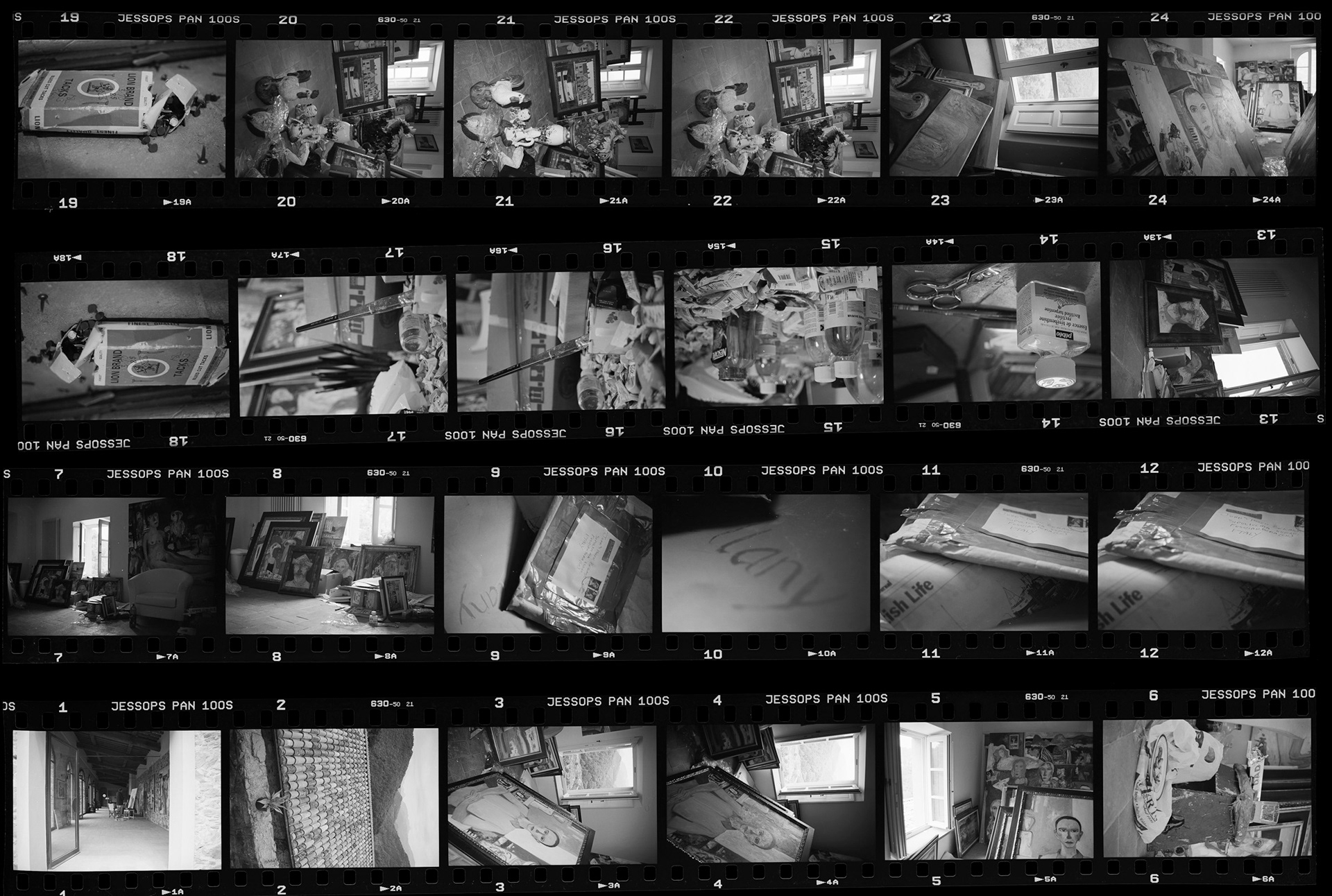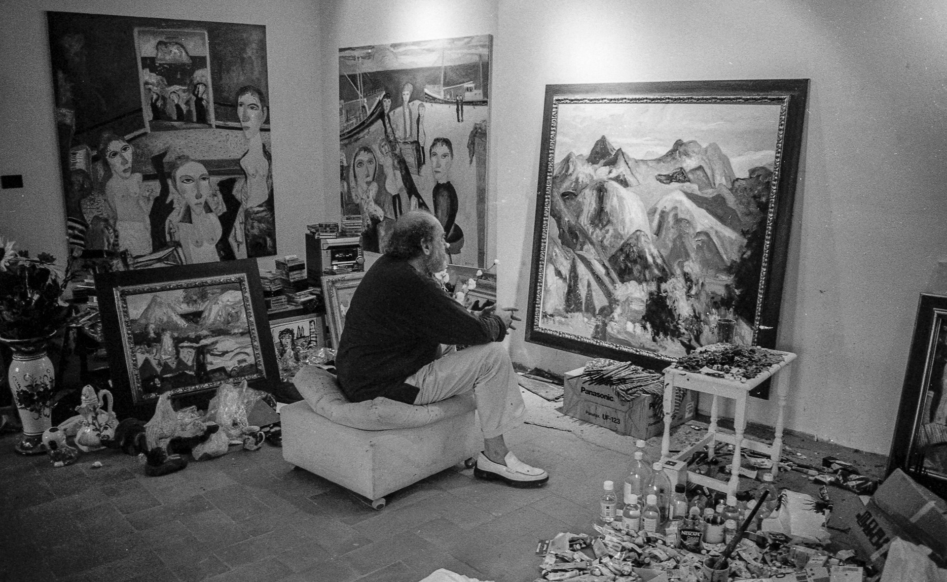 I met John Bellany while working within the council of Barga's cultural department. I was commissioned to do both the photography and the design for his catalogue and exhibition "John Bellany in Valle del Serchio: a new Provence". Following this first positive experience I continued working with John throughout the rest of his life on various catalogues and books. These photos were taken at his studio in SIpulicchia, Tuscany.